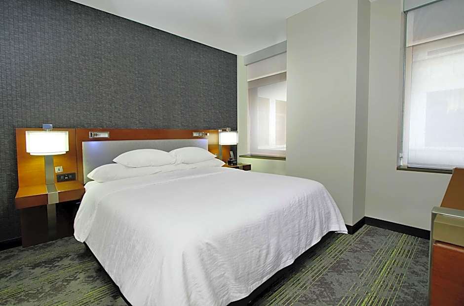 This suite features a sitting area, desk, refrigerator, microwave, air conditioning, coffeemaker and large flat-screen cable TV.